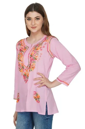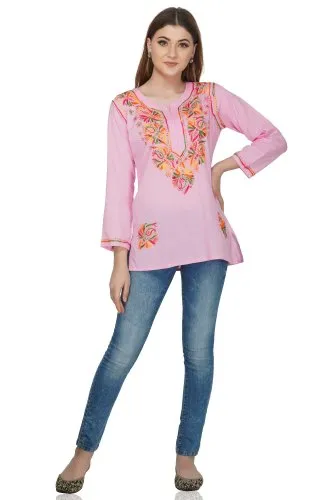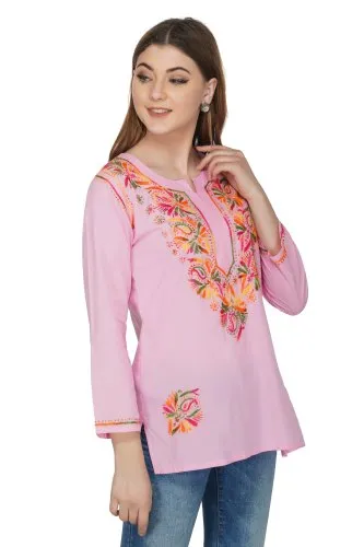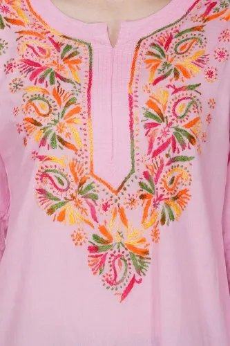 Women Chikan Embroidered Cotton Blend Straight Kurta