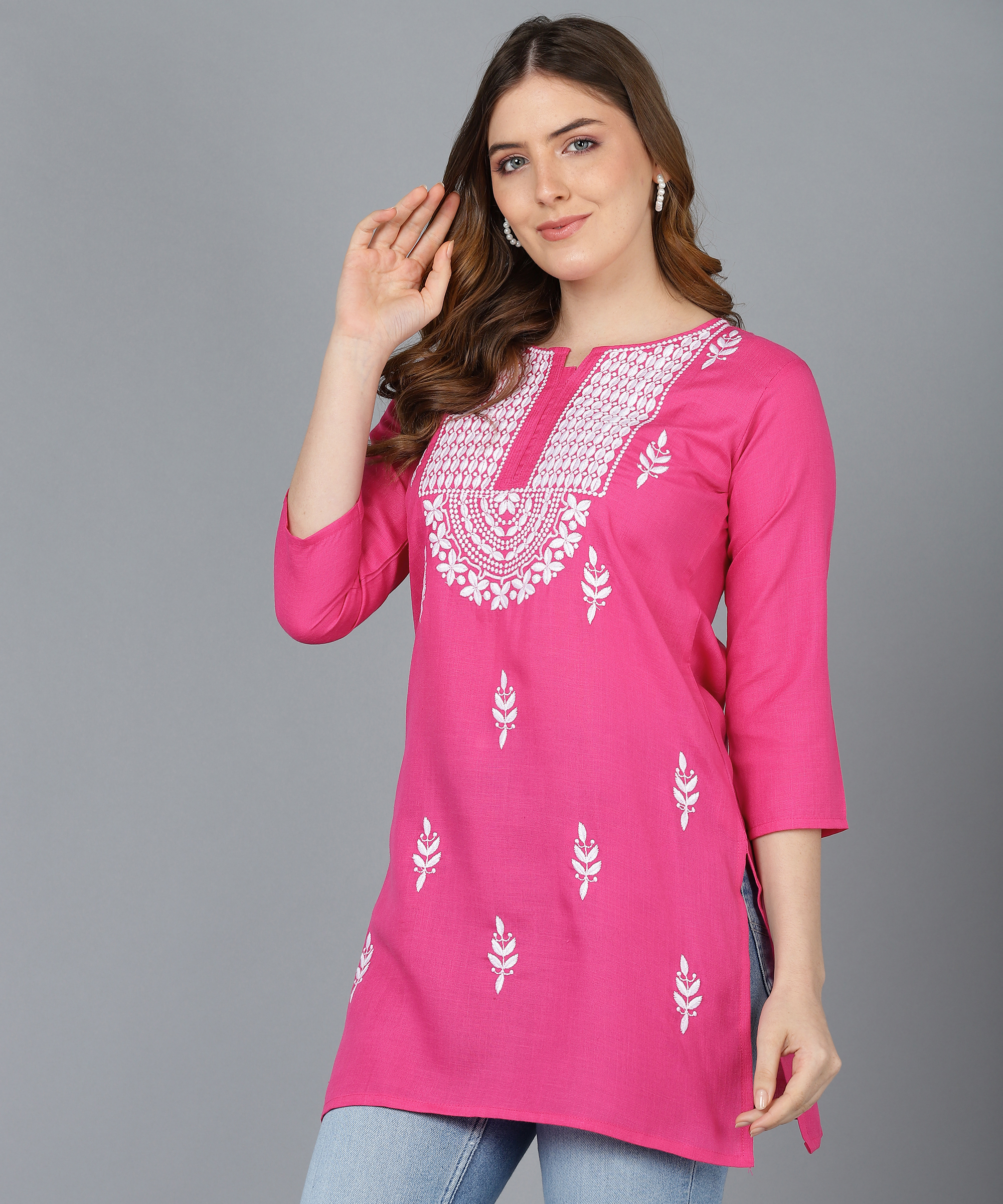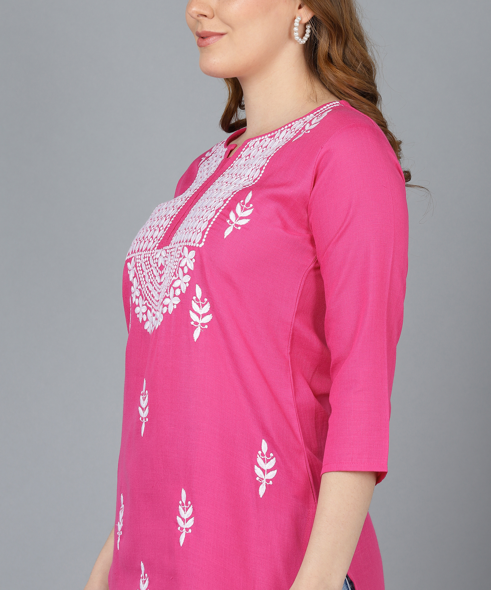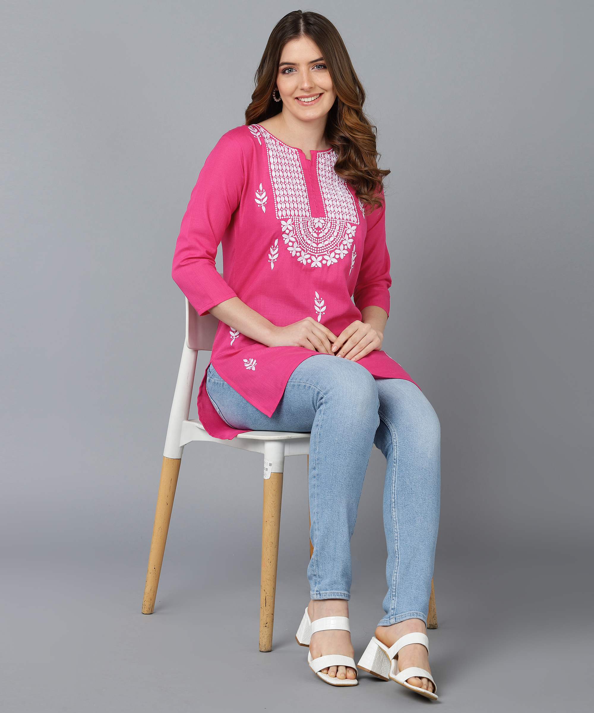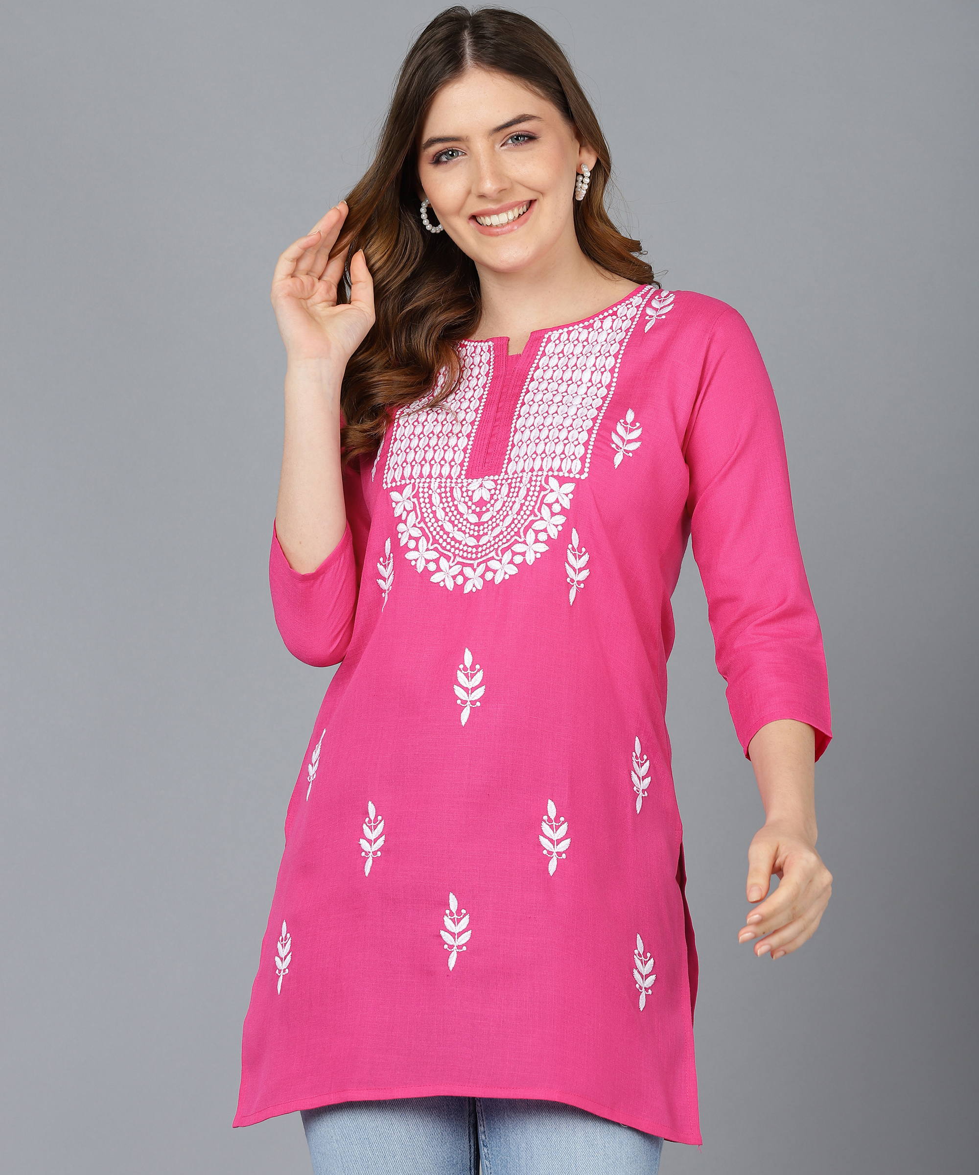 Style this chikankari kurti with blue jeans or white leggings and minimal silver jewellery for a smart ethnic-fusion look. Perfect for office wear, casual days, or small gatherings.